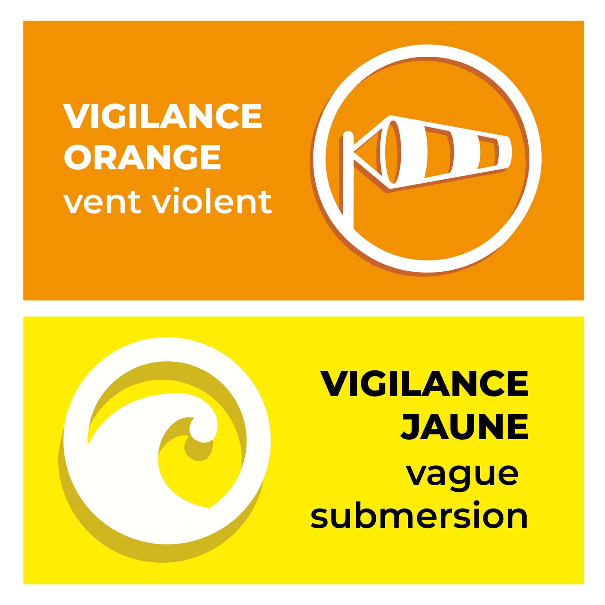 Alerte vigilance orange vent et vigilance jaune vague submersion