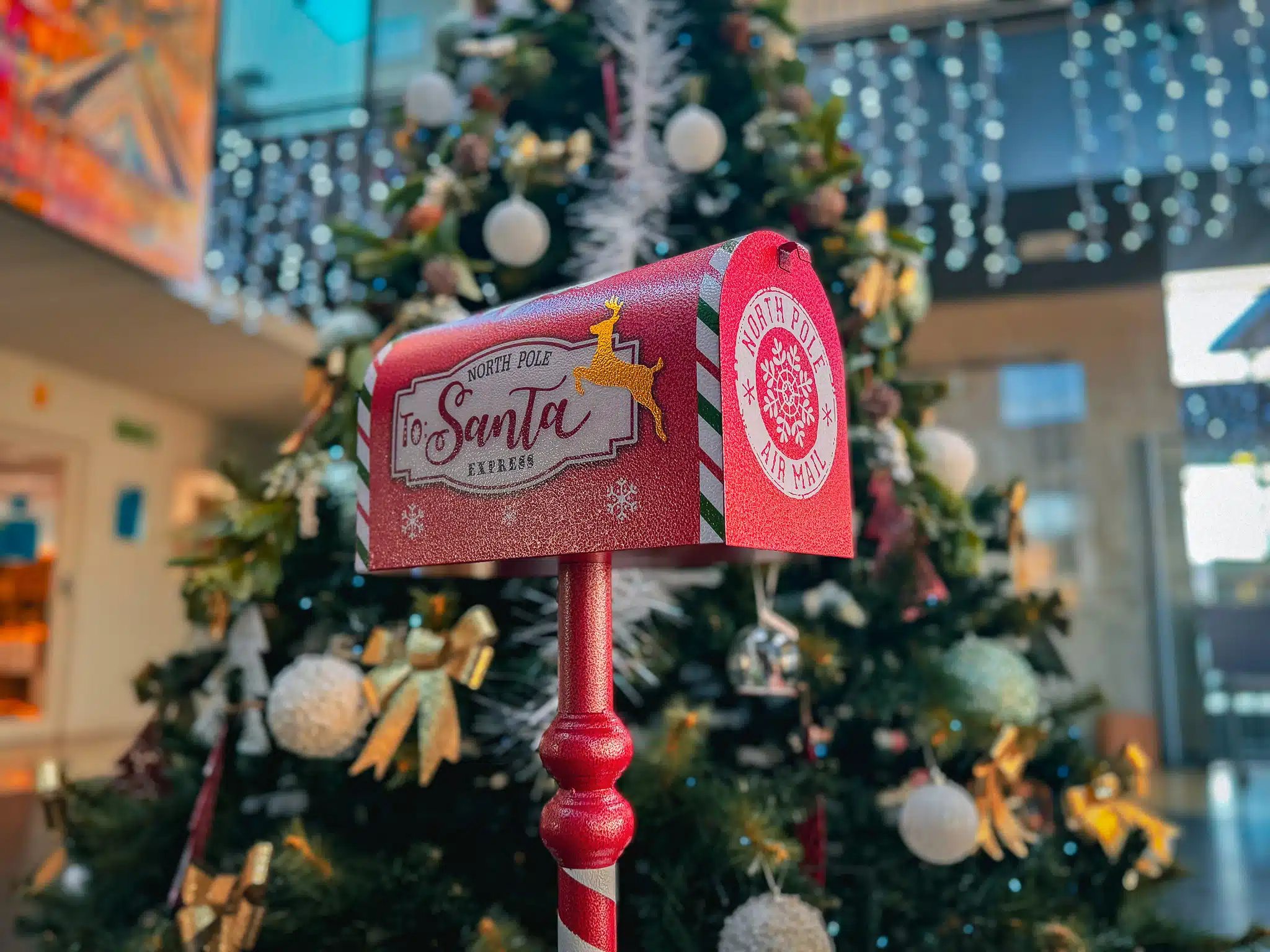 Les lutins sont discrètement venus déposer la boîte aux lettres du Père Noël au pied du sapin de l’hôtel-de-ville.