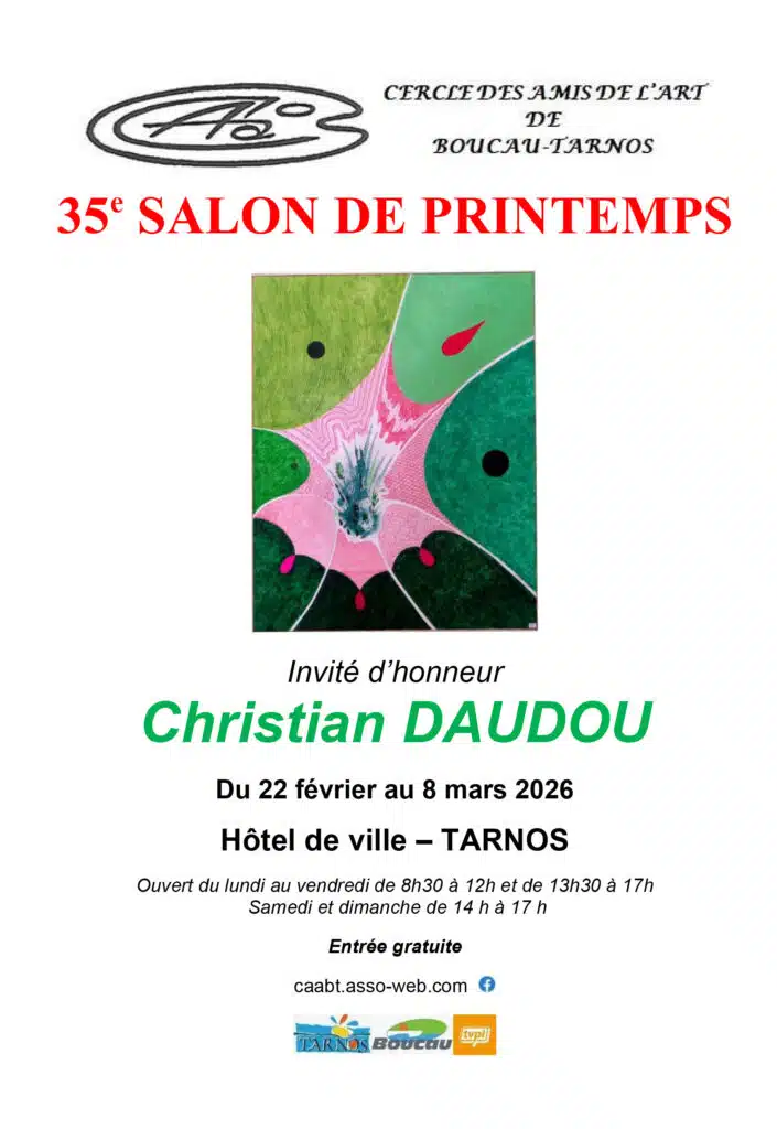 Pour cette 35e édition du Salon de Printemps, Christian Daudou sera mis à l’honneur avec l’exposition de ces oeuvres dans le hall de l’hôtel-de-ville, ainsi que celles d’autres artistes.