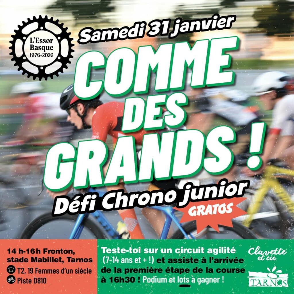 Dans le cadre de la 1ère étape de la course cycliste de l’Essor basque, l’association Clavette & Cie organise une animation gratuite « spécial enfant »* au fronton du stade Mabillet de 14h à 16h.