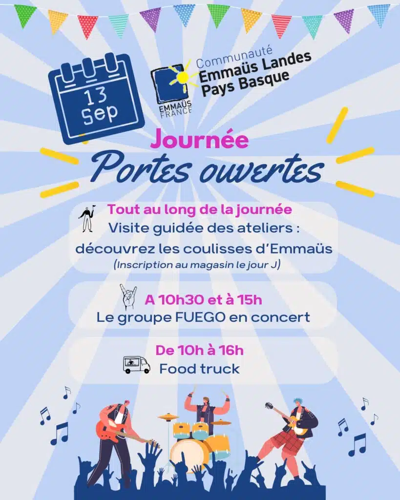Samedi 13 septembre, de 10h à 17h30, Emmaüs Landes – Pays basque invite le public à (re)découvrir les coulisses de cette communauté solidaire, son fonctionnement, ses valeurs, et les talents qui l’animent au quotidien.