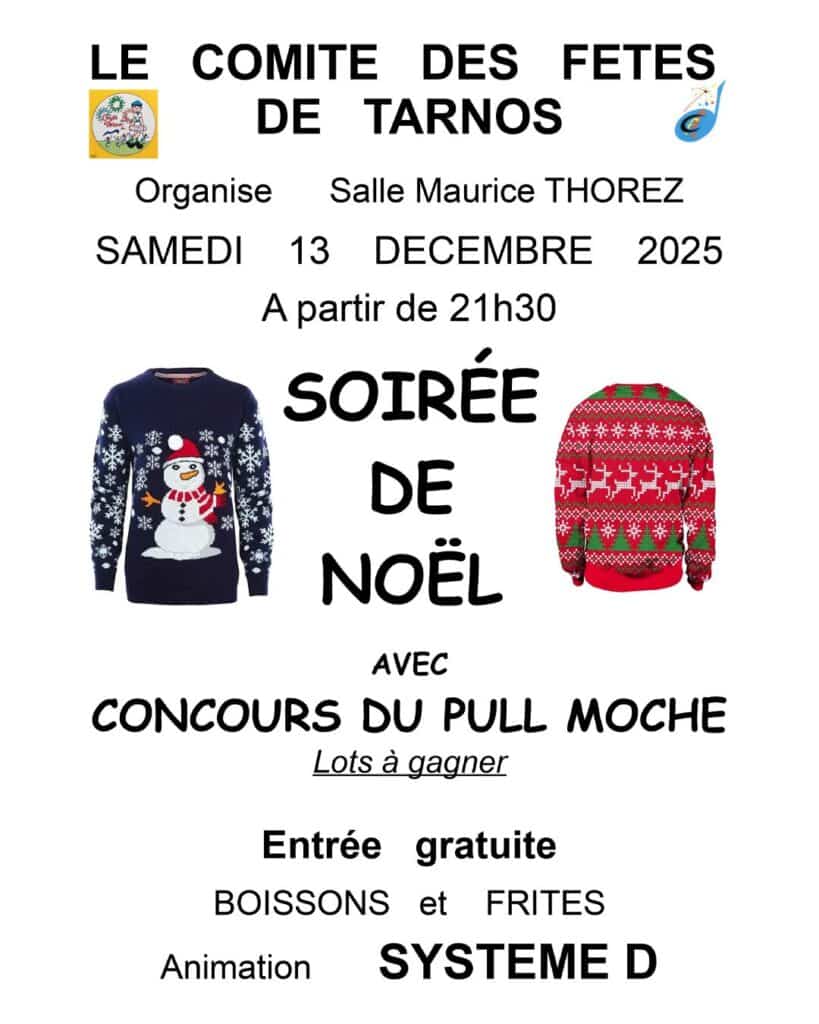 Vêtu de votre plus beau pull moche de Noël, le comité des fêtes vous attend pour leur soirée de Noël au son des musiques de Systeme D.